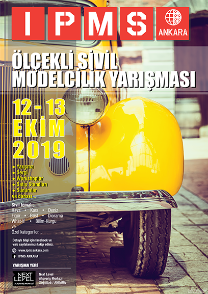 Bu yılın ikinci yarışması olan “2019 Ölçekli Sivil Modelcilik Yarışması”nı 12-13 Ekim 2019 tarihlerinde gerçekleştirdik. Öncelikle organisasyonumuzda yarışmacı olarak katılan, satış standları açan, Jüri üyeliği yapan, sergimizi gezen ve yardımlarını esirgemeyen herkese teşekkürü borç biliriz. IPMS Ailesi olarak, bir kez daha güzel geri dönüşler aldığımız bu organizasyonun sizlerin de katkısıyla giderek büyümesi ve yaygınlaşması ise tek temennimiz.